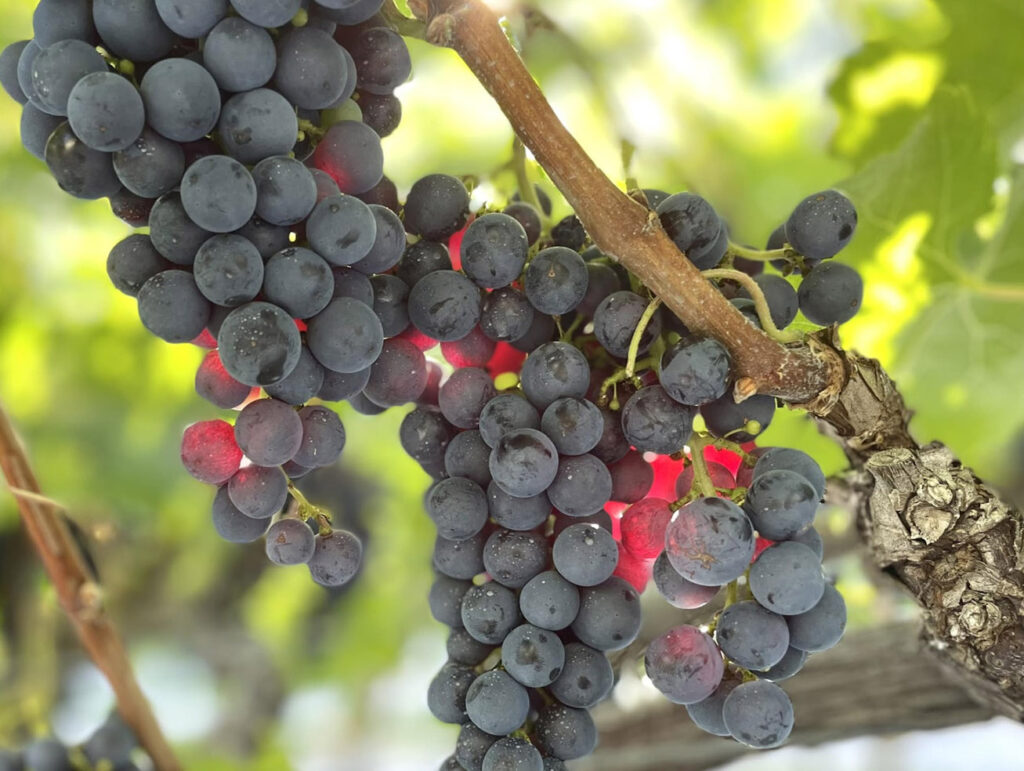 機山洋酒工業が自社畑で栽培している主な品種は、甲州、シャルドネ、メルロー、ブラッククイーンなど。長年の経験を生かし、安定した収量が確保できると感じた品種に絞って大切に管理している。