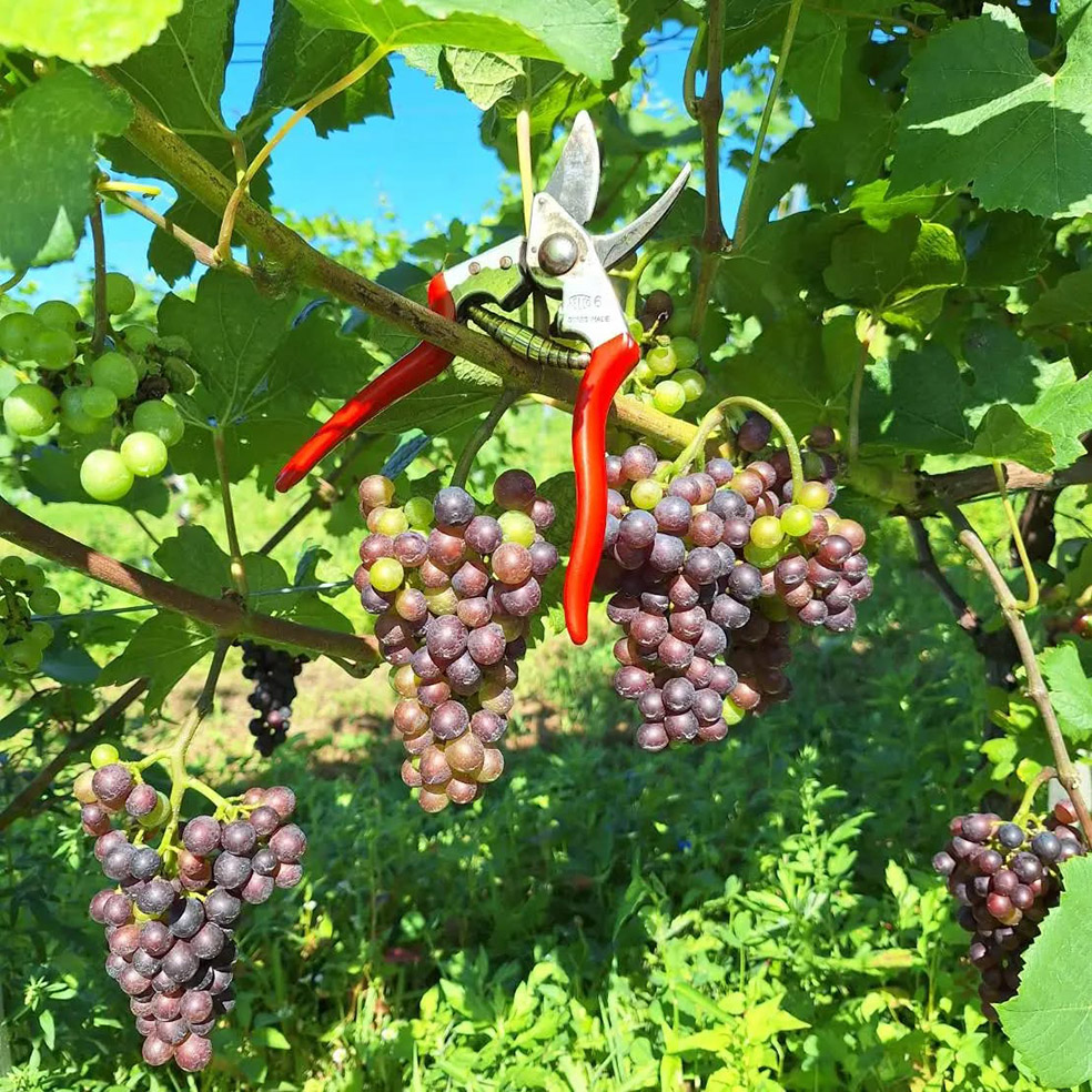函館のぶどうに対するド・モンティーユ氏の評価は「きれいなぶどう」。糖と酸、皮や種の成熟度合いが、ワインにするのに最適な状態であるかどうかを確認しつつ丁寧に収穫する。