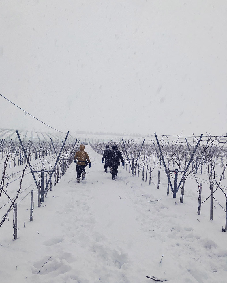 雪が多い地域では、樹を地面に対して平行に近い角度になるよう植樹し、雪が降り始めると樹を雪に埋めて越冬することがある。だが、ド・モンティーユ氏が希望したのは、あくまでもブルゴーニュと同様の栽培手法をおこなうことだった。その点、函館では剪定のタイミングもブルゴーニュと同じでよい。冬の間は樹液は地中にあるため幹はカラカラになっており、地面が凍らなければ凍害に合う恐れもないそうだ。