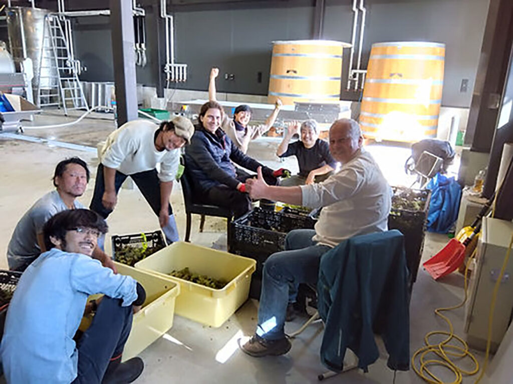 函館の自社畑での収穫作業は、10月10日頃にスタートする。8月から9月上旬にかけて収穫をおこなうブルゴーニュよりも、1か月ほど遅い。そのため、ド・モンティーユ氏はブルゴーニュでの収穫を終えてから日本に足を運ぶことが可能だ。まずはピノ・ノワール、続いてシャルドネの収穫に取りかかる。