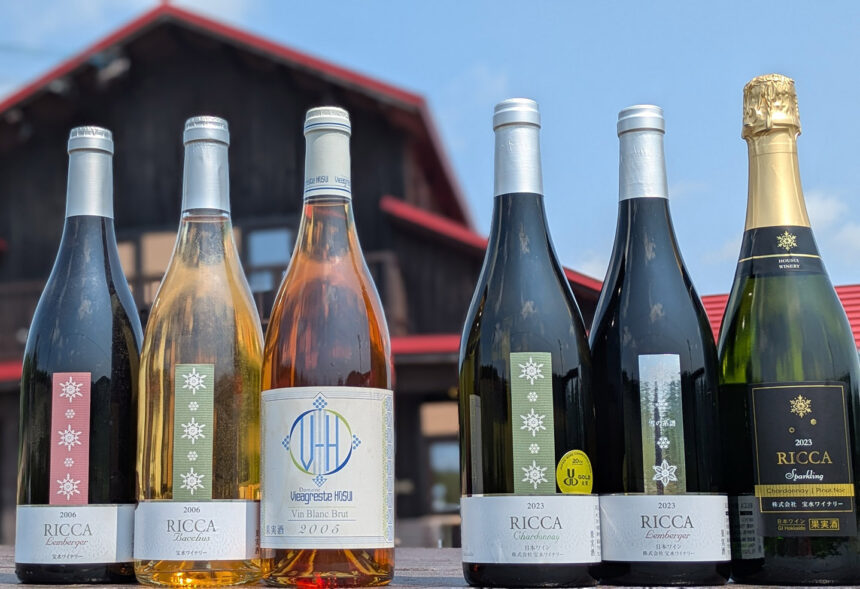 畑のエリアごとの特徴を最大限に引き出すワイン造りをおこなっている宝水ワイナリー。岩見沢の象徴である「雪」をテーマにしたワイン造りをしており、繊細かつ透明感のある味わいが強みだ。代表的なシリーズ「RICCA」は、雪の結晶を意味する「六花」が名前の由来となっている。