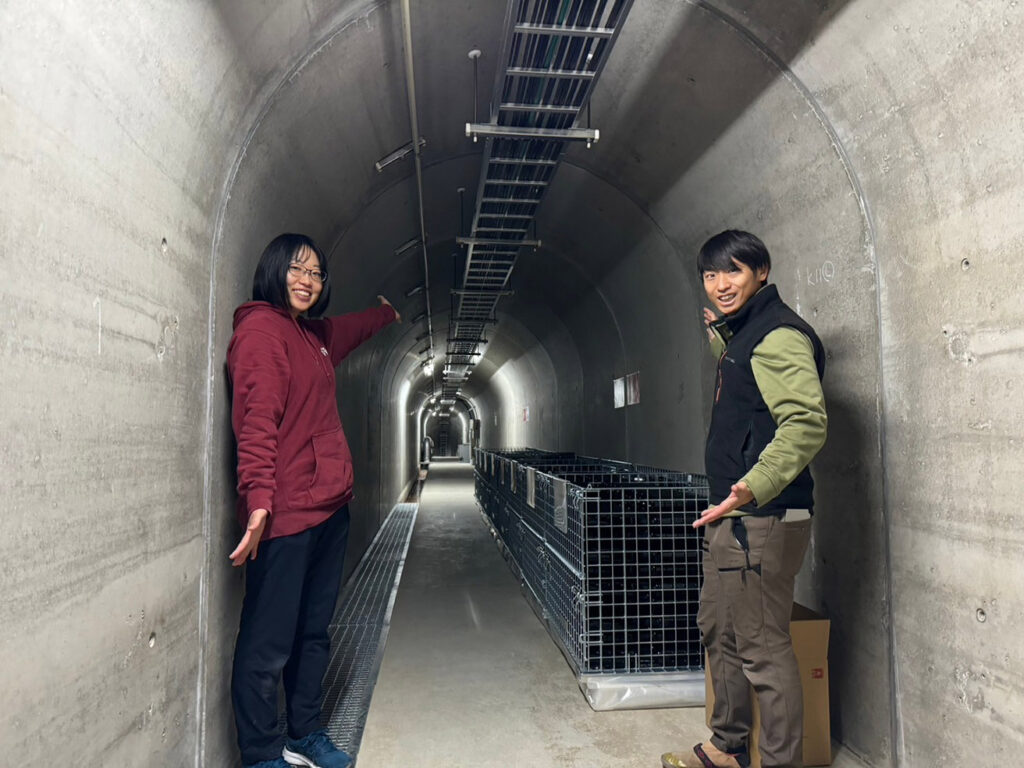 兎ッ兎ワイナリーの新たな取り組みが、ワインの「ダム熟成」。2023年に造ったワインを樽熟成した後、2024年からはダムの地下空間にボトルを移動させて熟成を開始したのだ。