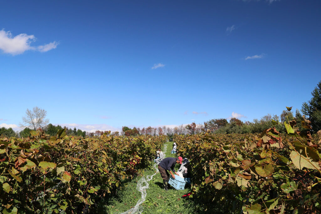 だが、最近は秋になっても気温が下がりにくくなってきて、10月でも日中の気温が20℃近くあることも珍しくない。そのため、収穫タイミングも年々早まっており、2025年は9月20日頃から収穫を開始。畑が点在していて区画によってぶどうの熟し方が異なるため、例年10月中頃までかけて収穫をおこなう。