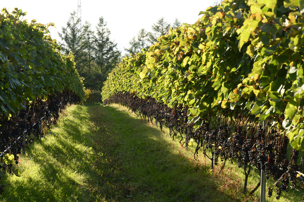 めむろワイナリーのぶどうは農家が個々の技術力を生かして栽培しているが、ヤマブドウ系品種がメインのため、強い酸をできるだけ抑えられる栽培をおこなうことを共通認識として持っている。