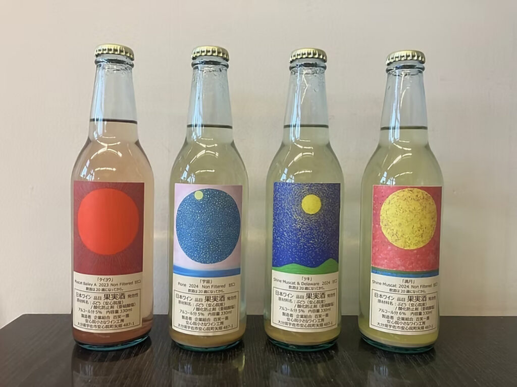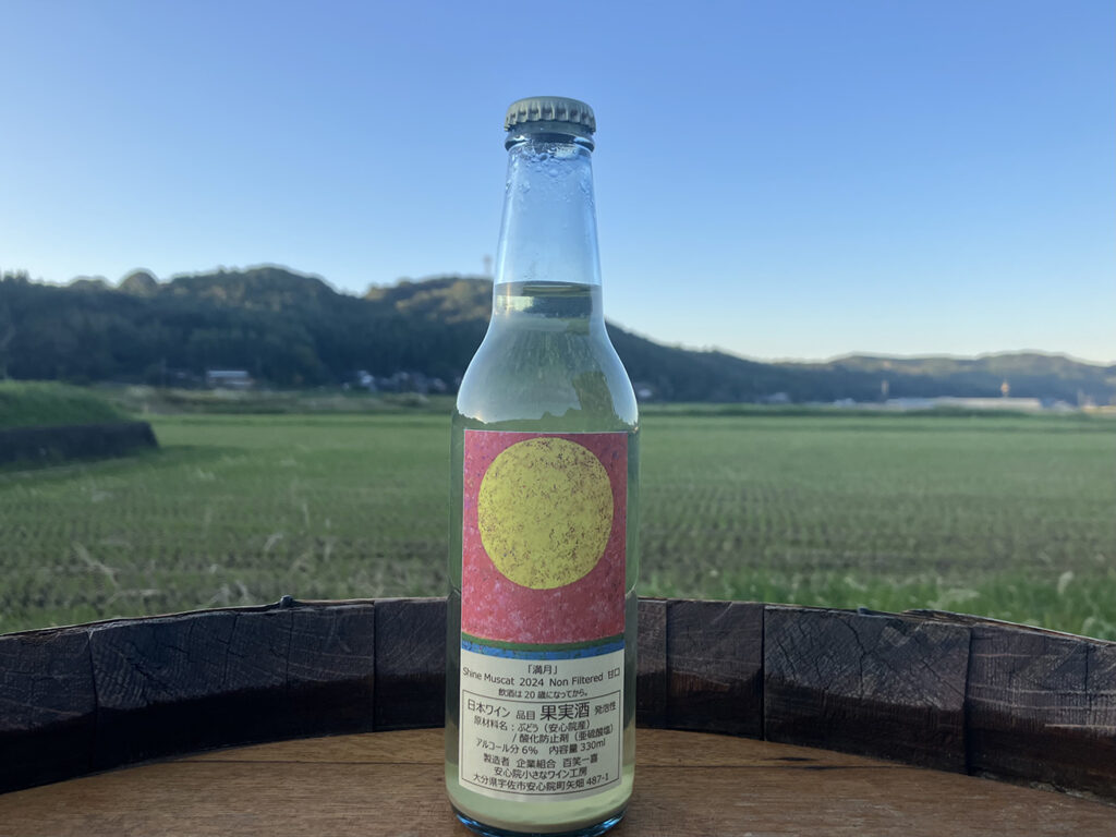 「満月」は甘口だが、シャインマスカット由来の自然な糖分によるもので、補糖はしていない。アルコール度数は6%程度と低めで、気軽に飲める親しみやすさがある。