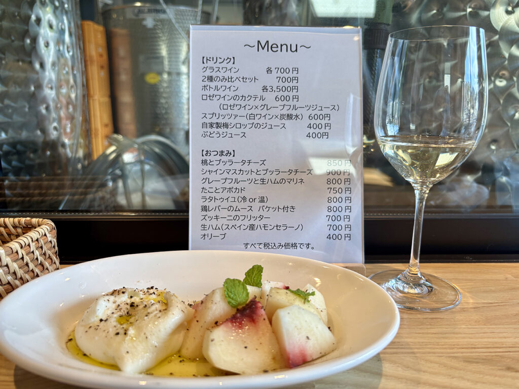 醸造所には5席の試飲スペースも設けられており、グラスワインと共に、季節の野菜や果物を使ったおつまみを味わうこともできる。調理を担当するのは、ソムリエと野菜ソムリエの資格を持ついずみさんだ。