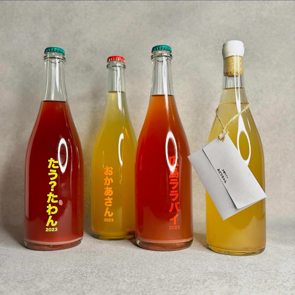 no.505 Hiroshima Wineryのワインボトルは、ワイン名の文字だけがボトルに直接書かれたシンプルなデザインだが、シンプルさが非常にユニークな印象を与える。ワインの名前には、産地の広島にちなんだ広島弁を使ったネーミングもあるので、ぜひ公式サイトや公式SNSで、込められた意味と思いを確認してみて欲しい。