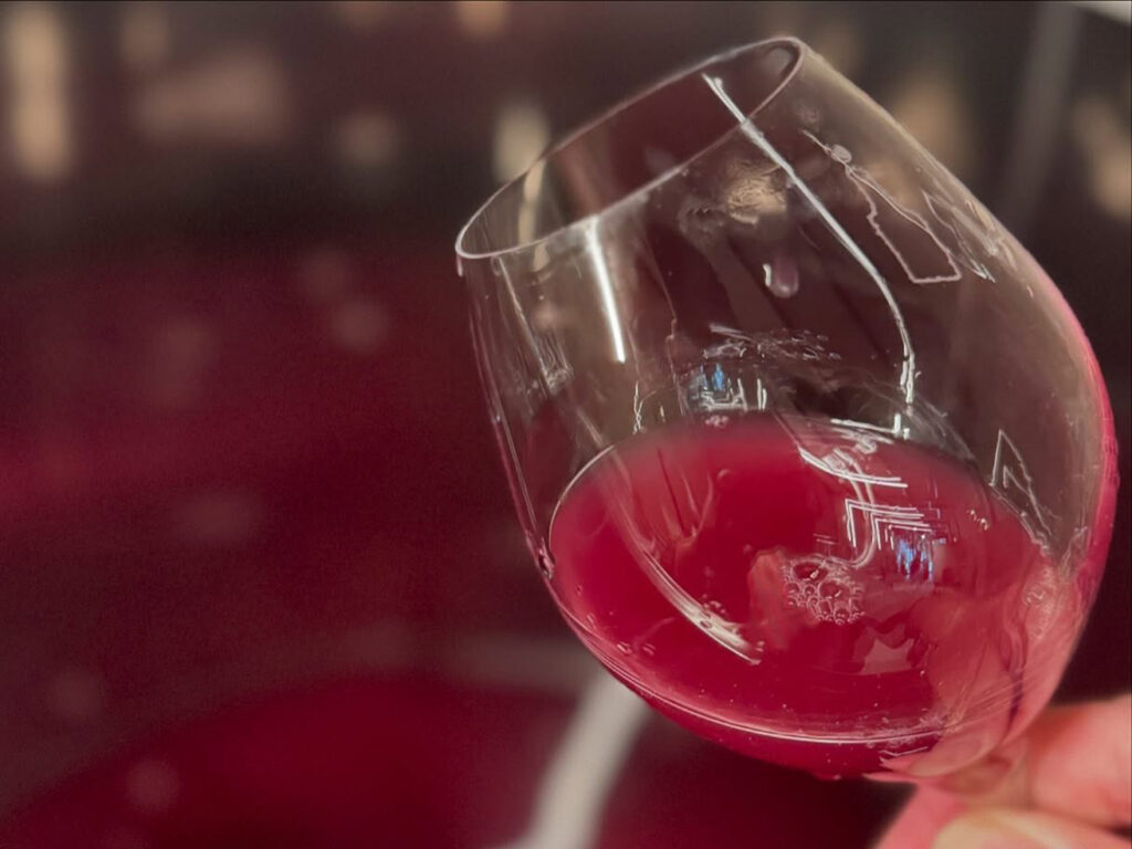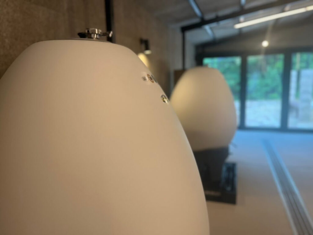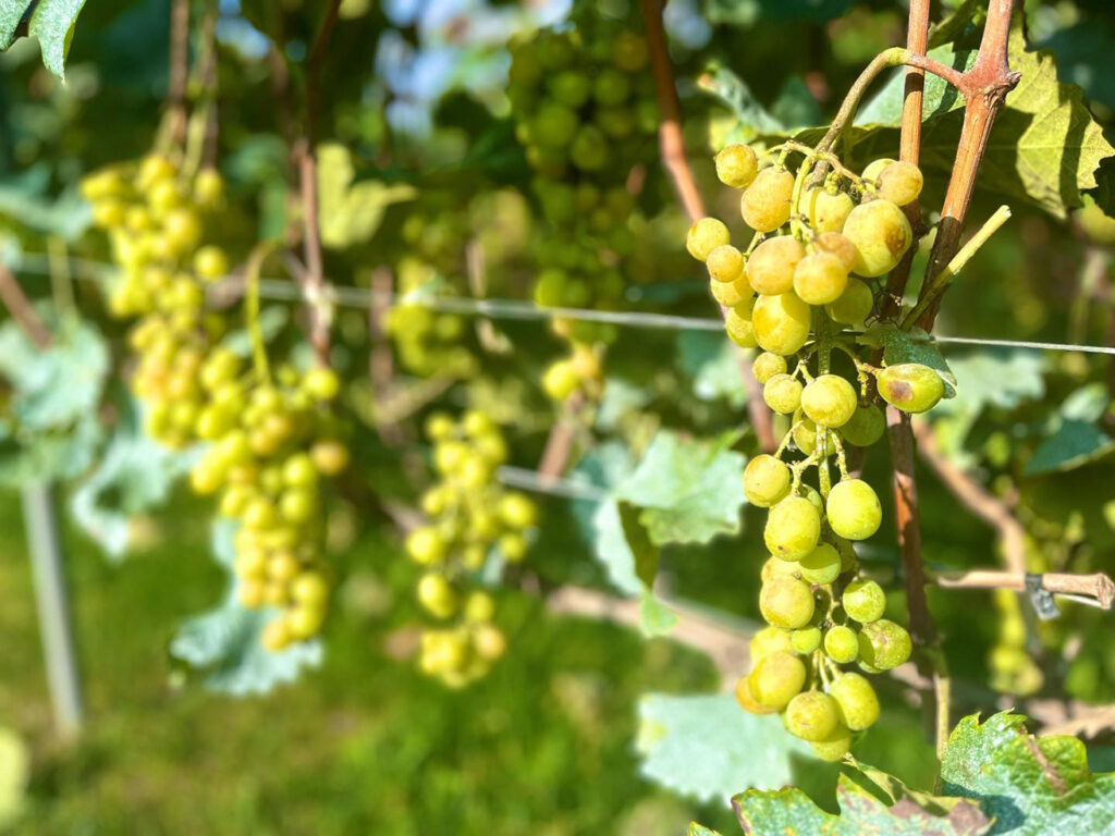 「大粒のぶどうなので、収穫に適した時期を見極めつつ、粒がつぶれないように工夫した結果、熟した粒から順に収穫していくスタイルになりました。2024年の収穫は、8月末から11月までかけて実施しましたね。独特な方法ですが、品質管理を徹底して健全なぶどうを育てたことで、ぶどうの味わいが強いワインができました」。