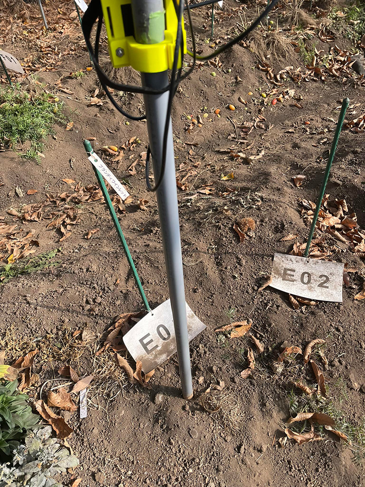 まず杖型センサーは、長い棒の先端に付いたセンサーを土に当てることで瞬時に数値を取得できる。計測を思い立ったらすぐに使える、取り回しのよさが強みだ。