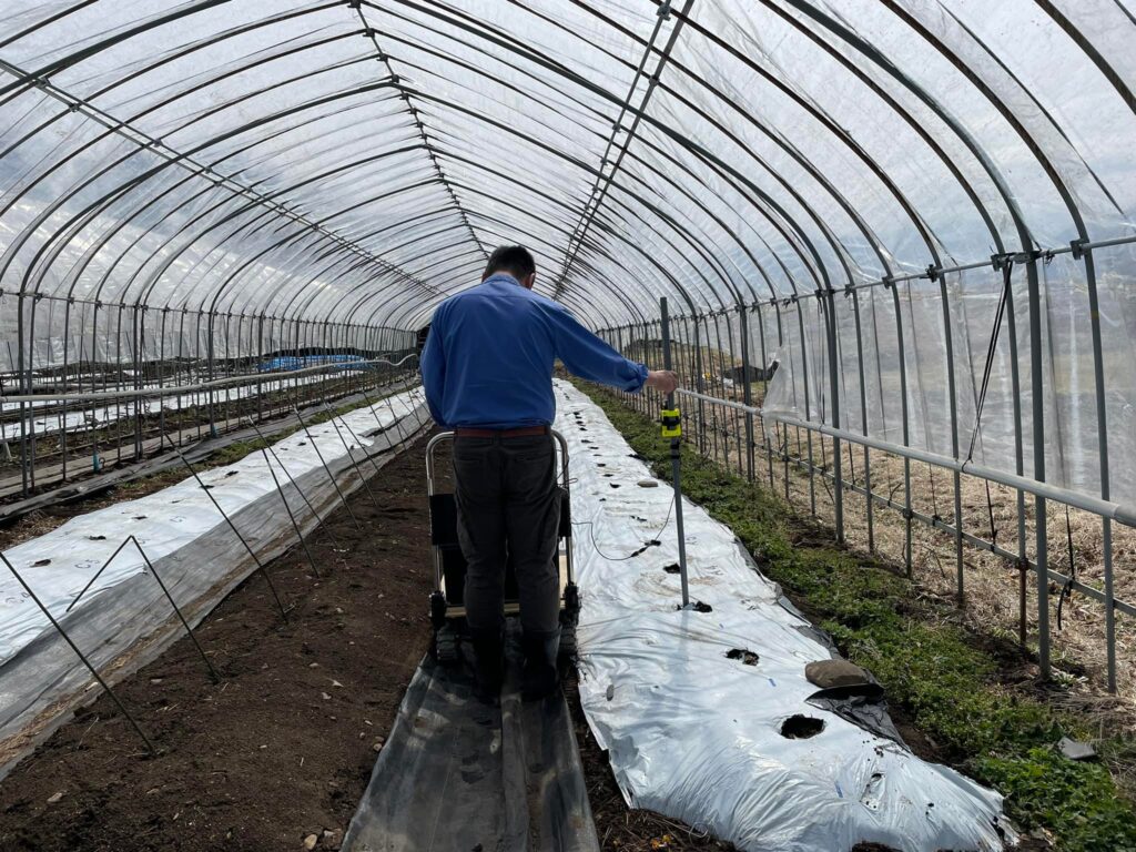 「自社で保有している畑で使用して、実証実験を重ねました。圃場の気になる箇所のみのチェックにも使えますし、広範囲な土壌マップを作るのにも活用できます。杖型センサーで圃場を等間隔に計測すると、どの場所にどんな成分が集中しているかなど、スポット単位で土壌の状態を見える化できるように、さらに改善しています」。