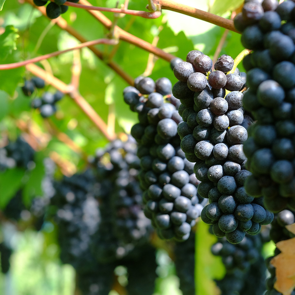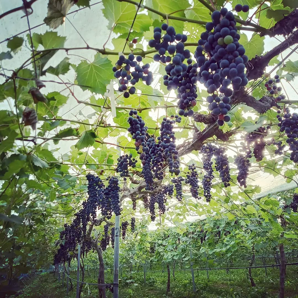 ぶどう栽培の開始時、いちばん初めに植栽したのは、ヤマブドウ系の交配品種。後にヨーロッパ系品種も栽培するようになり、2025年現在、奥出雲葡萄園の自社畑には、バラエティ豊かなラインナップがそろう。