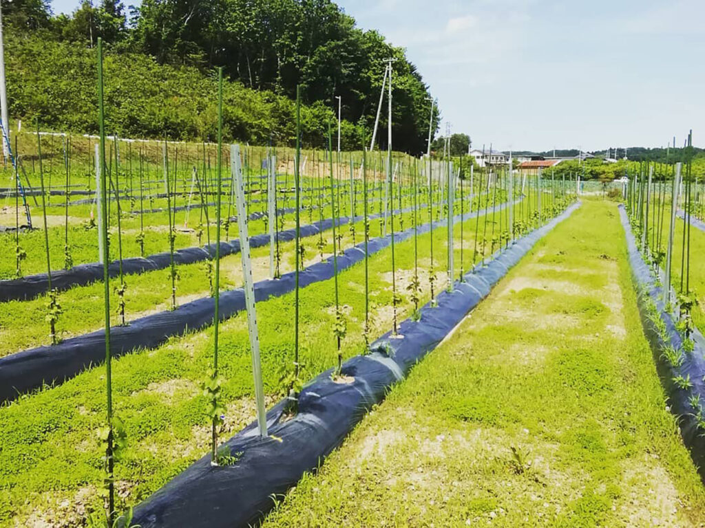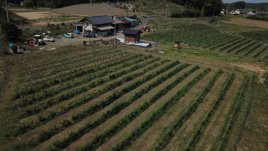 コヤギファームのぶどう畑は、震災前には牧草地や水田として使われていた土地だ。震災後に他の地域に移り住み、南相馬市に戻らない人も多い。使わなくなった土地を借り受けて造成した区画もあるそうだ。三本松さんが自ら手がけた圃場の造成作業には、酪農に従事していた経験を生かすことができた。