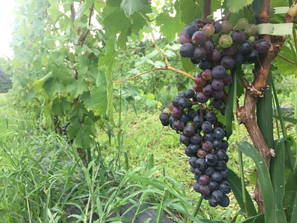 コヤギファームのぶどうは成長が早かった。初年度から剪定が必要なほどで、2年目以降も順調に生育を続けている。中でも三本松さんお気に入りの品種は甲斐ノワールだ。