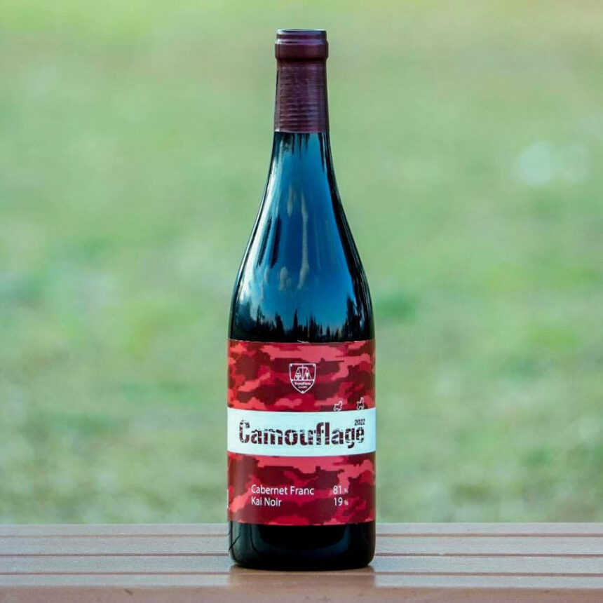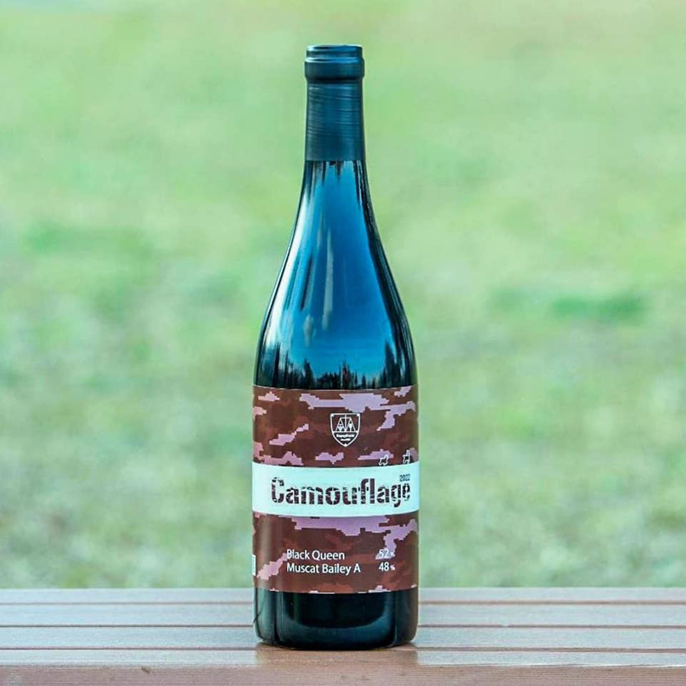 コヤギファームがリリースしている「 Camouflage(カムフラージュ)」シリーズは、キャンプやアウトドアシーンでで飲めるライトなワインをイメージ。エチケットはおしゃれな迷彩柄だ。
