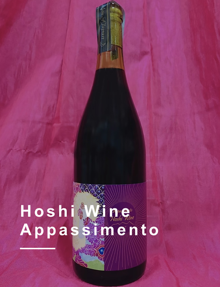 「コース料理のメインの後半に飲んでほしいワインです。インバウンドのお客様に日本ワインを紹介しても、メインにはボルドーやブルゴーニュを飲みたいと言われているのを見聞きした経験から、濃厚な日本ワインを造りたいと考えて生まれたのが『Hoshi wine』です。濃厚で長い余韻を楽しんでください」。